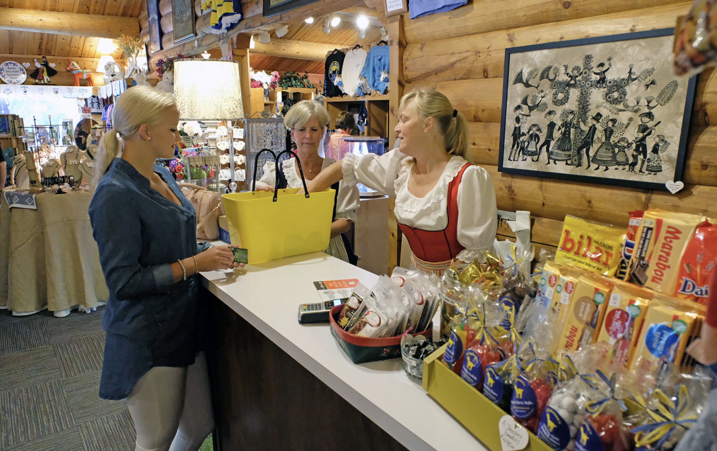 Al Johnson’s Butik is the retail store located inside the restaurant featuring Scandinavian gifts, clothing, food, and jewelry. From wooden Swedish Dala Horses, Troentorp clogs, Norwegian Sweaters, and handcrafted Scandinavian jewelry to Al Johnson’s branded goods and foods to many amazing houseware items. The perfect place to find the right gift.