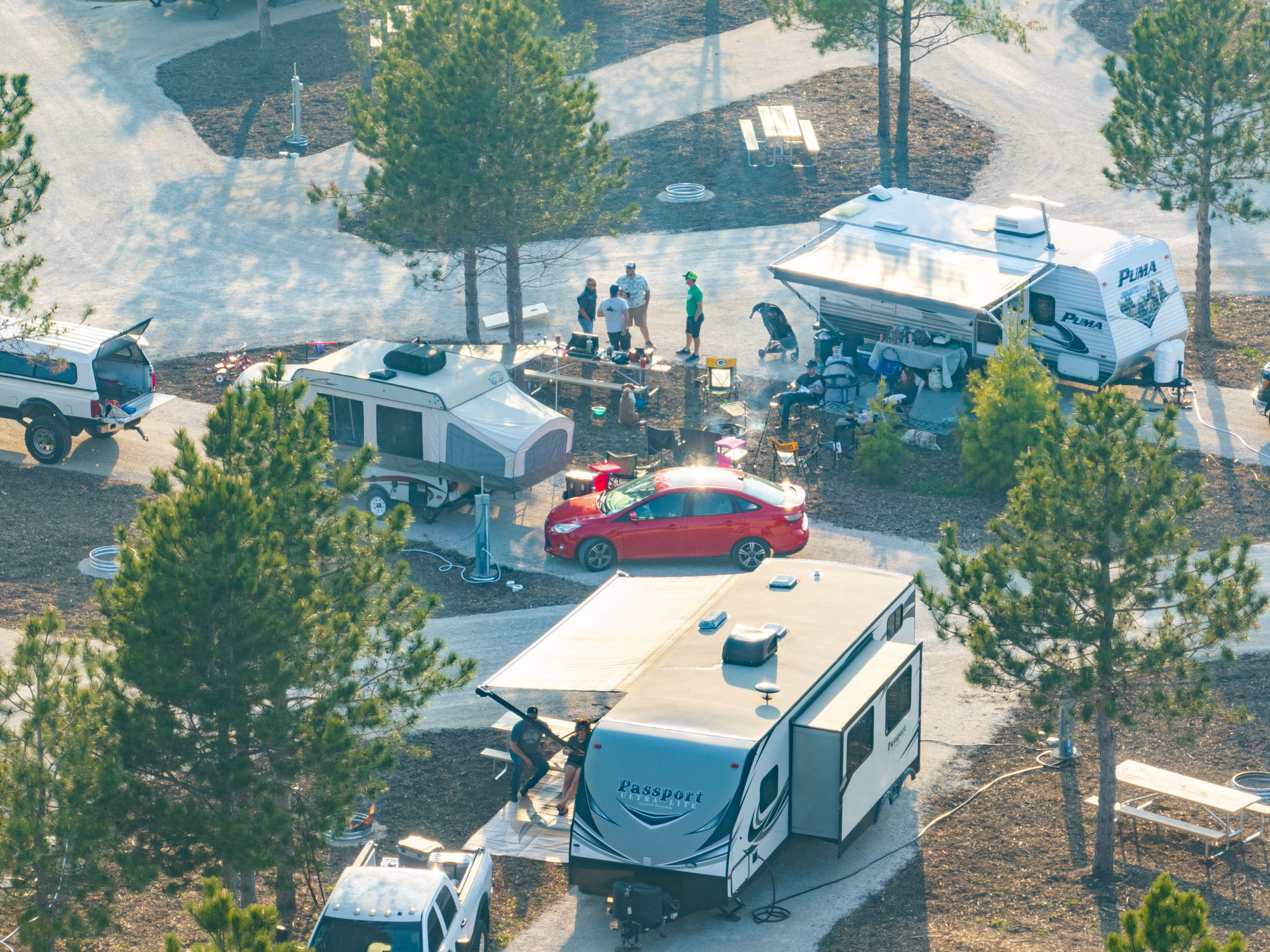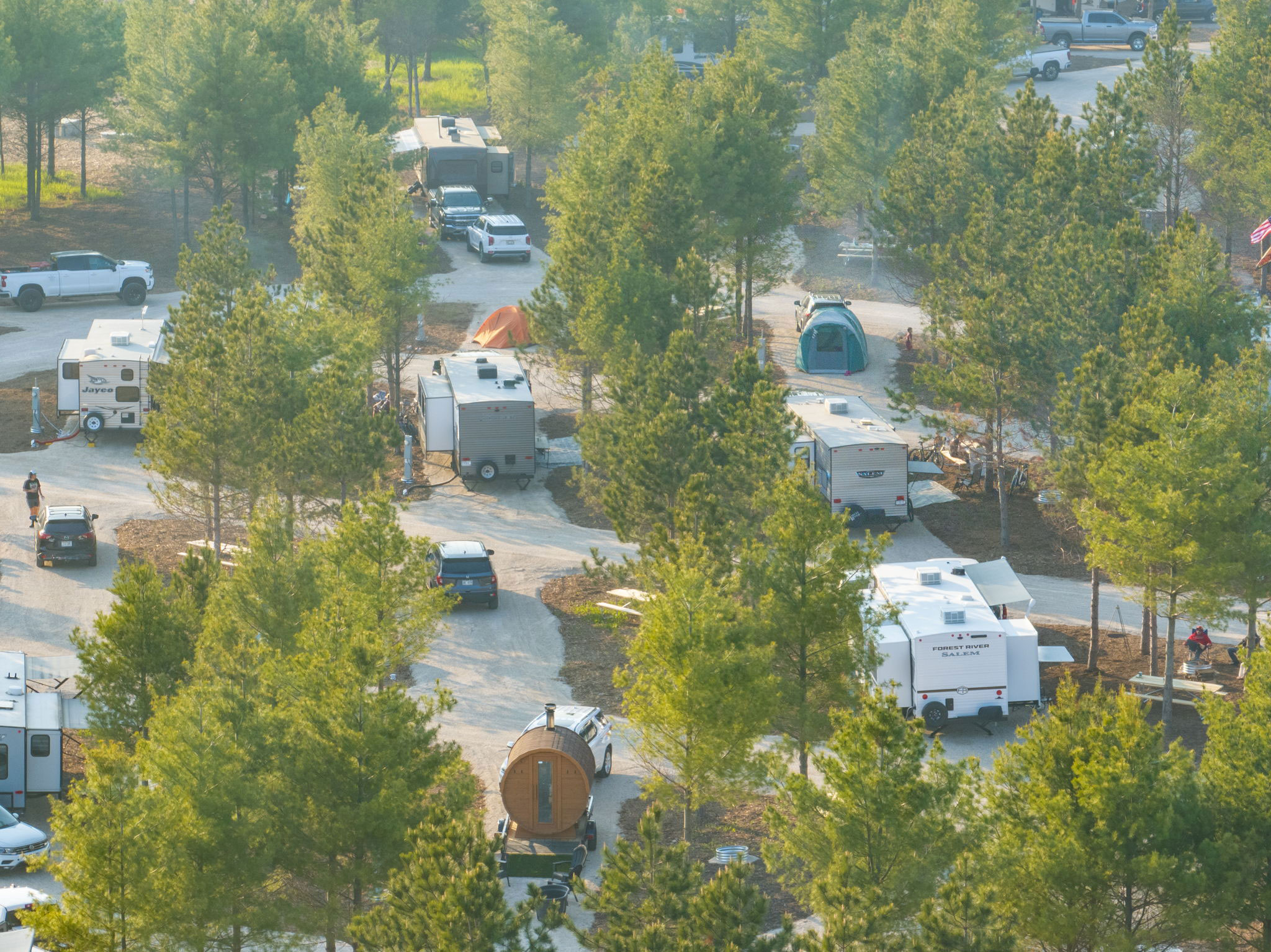 Camp Door County is Door County’s newest camping and glamping playground. Located just outside of Sister Bay, our luxury campground offers 77 spacious sites equipped with full hookups, including 50/30/20 amp power, water, sewer, and Wi-fi. Our camp store offers all of your essentials along with healthy, sustainable, and organic options. And don’t forget to join us in “The Pines” for wine and beer each evening.